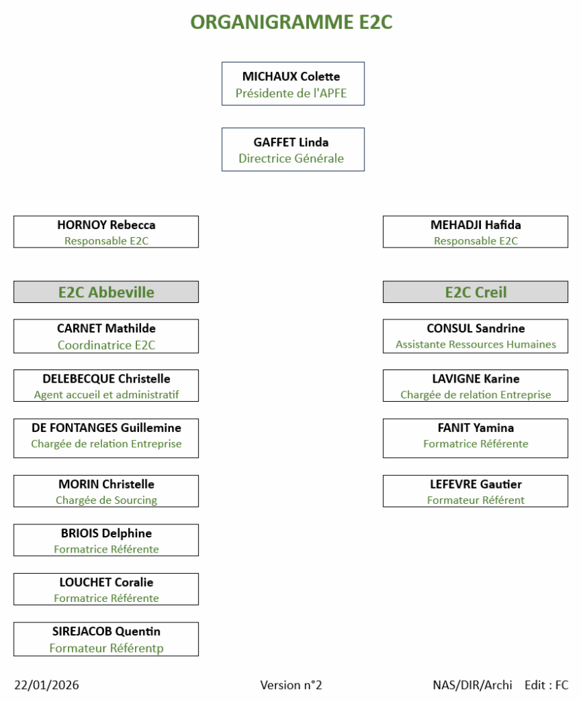 L’APFE association loi 1901, porte le dispositif E2C Ouest Som’Oise. Elle œuvre depuis 1983 dans l’accompagnement socioprofessionnel.